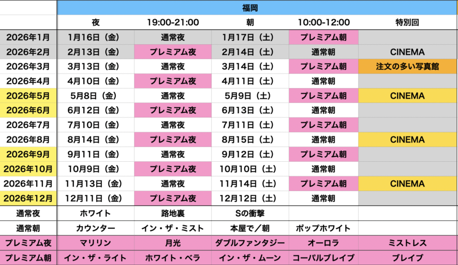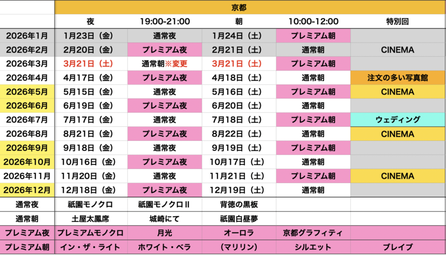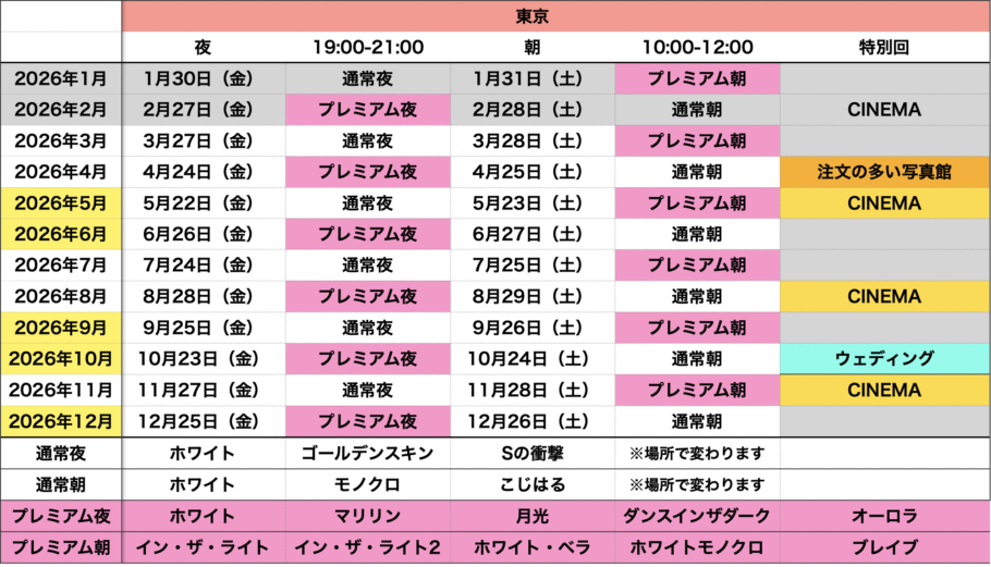 ※2026年から2025年まで比べて撮れる画が倍増します。各地域「5月・6月・9月・10月・12月」の撮影はこれまでと別のメニューの”秘密の撮影”となります。地域によってはスタジオも変わる可能性があります。