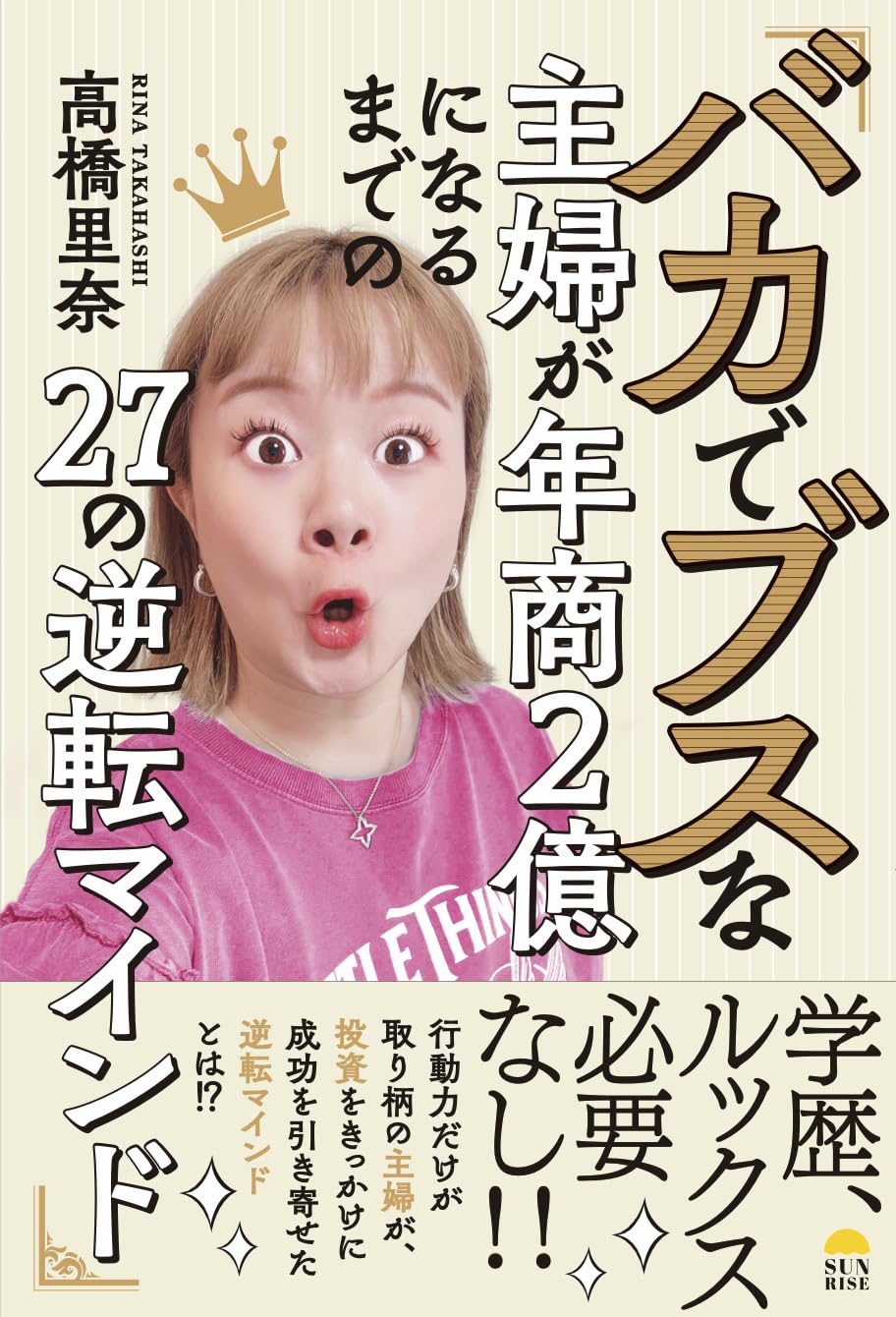 『バカでブスな主婦が年商2億になるまでの27の逆転マインド』——学歴も特技もない、ごく普通の主婦だった高橋里奈さんが、借金・挫折・周囲の反対を乗り越え、わずか数年で年商2億円を達成。その秘密は「ラッキーマインド」と呼ぶ前向きな思考法にありました。