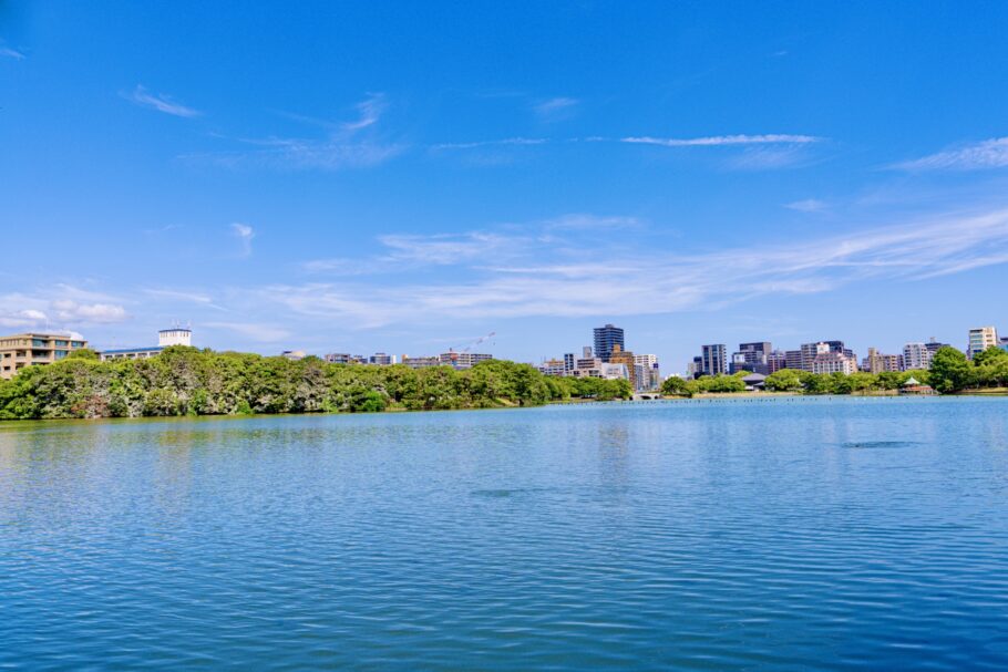 天神の賑やかなエリアから、徐々に景色が変わっていきます。大濠公園では、水鳥の声を聴いたり、広い空と水面を眺めたり。池の中央にかかる橋を渡るのも良い気分転換に。