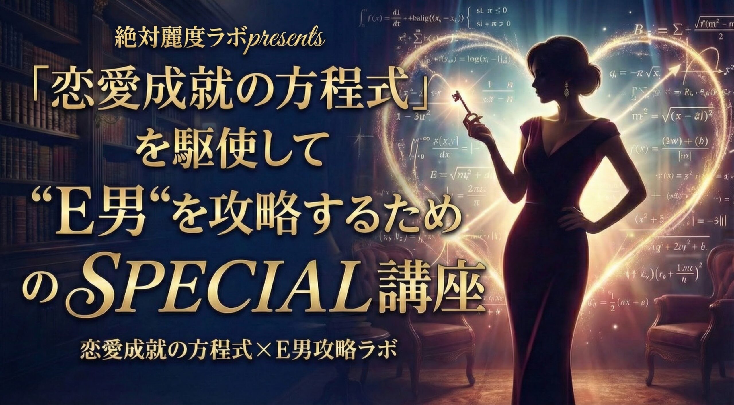 【12/27(土)】「恋愛成就の方程式」を駆使して“E男“を攻略するためのSPECIAL講座〜恋愛成就の方程式×E男攻略ラボ〜《絶対麗度ラボpresents/女性限定》