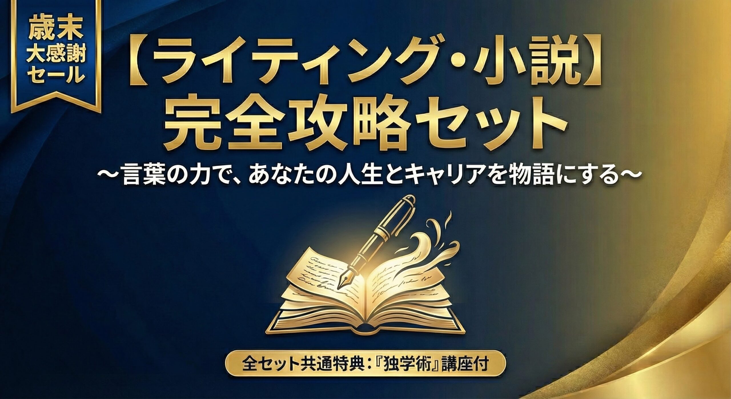 それだけではありません。「小説執筆」の講座も加えることで、論理的な文章力だけでなく、読者の心を揺さぶる「ストーリーテリング」の技術まで習得できます。2026年、あなたは「読まれる人」になります。