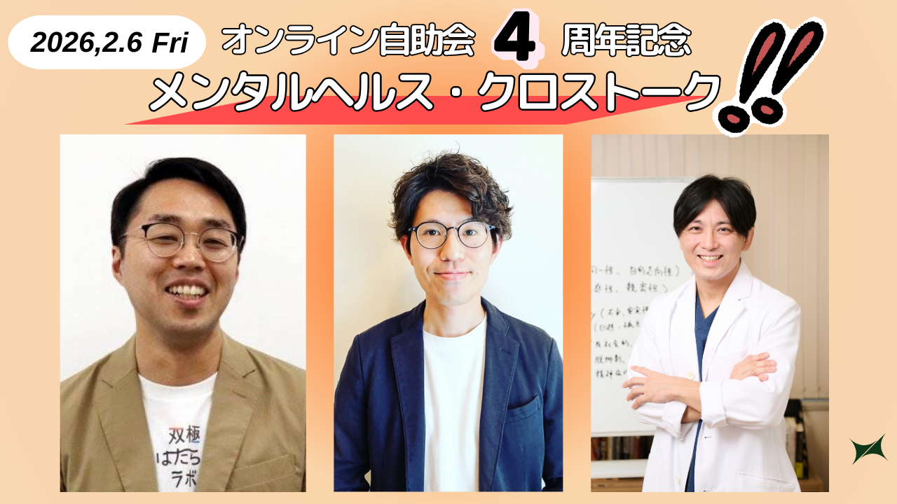 ★まだお申し込みいただけません!渋谷【2/6(金)19:00〜】メンタルヘルス・クロストーク!「オンライン自助会4周年記念」《中川 洋×松浦 秀俊×益田 裕介》3人のプロフェッショナルが集結!《席数限定》