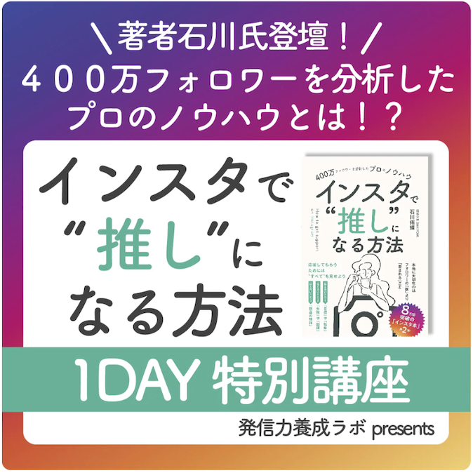 - 400万人のフォロワーを分析した「インスタで“推し”になる方法」特別講座:¥11,000(税込)