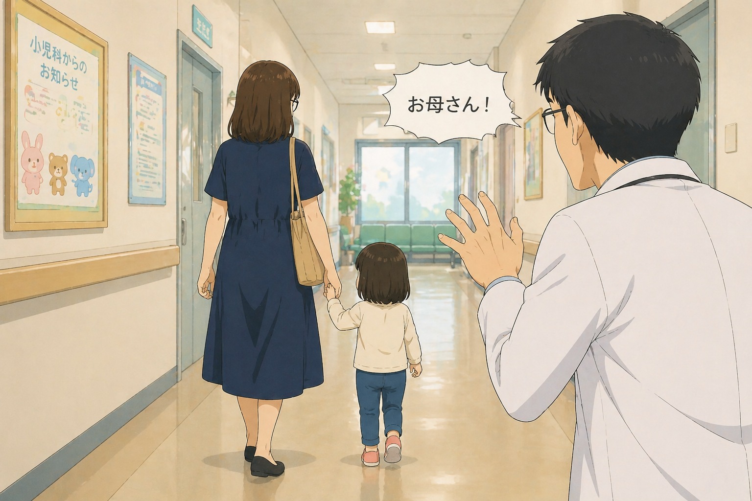 診察が終わり、娘の手を引いて診察室を出る。やっと帰れる。そう思いながら廊下を歩いていると、後ろから声が飛んできた。
