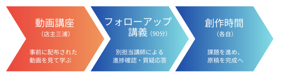 今回の講座は、店主三浦の登壇による【2025年4月開講「ブックメーカーズ」】の講義動画をご視聴いただき、リアルタイムでフォローアップを行う短期集中講座となっております。