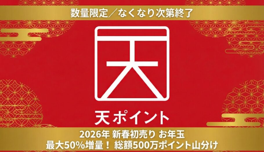 【1/4(日)23:59までの限定販売!】最大50%増量!総額500万ポイント山分け「お年玉天ポイント」キャンペーン《数量限定/なくなり次第終了》